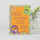 Una divertida invitación de cumpleaños para un fiesta de pizza de chica. Este colorido diseño presenta un colorido borde retro cuadrado y fondo naranja, dos niñas, pizza y palomitas de maíz. Perfecto para las sonoras también. Sólo personaliza el texto con los detalles de su fiesta. Las invitaciones vienen con sobres blancos y tu elección de papel. Algunos gráficos ©Riefka Designs