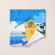 Chica retirada en la playa con su sombrero de sol y chanclas