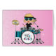Un dibujo animado lindo de un chica rubio que juega los tambores en una banda de rock, gafas de sol que llevan y pareciendo muy fresco y enrrollado. El fondo se llena de muchas estrellas en el rosa para la estrella del rock del futuro. Esto fue creada en parte con el clipart comprado de www.realdealclipart.com sgb01