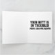TARJETA DE LA LISTA DE SANTA. EN EL INTERIOR SE PUEDEN LEER: ¡TÚ ENTRA EN PROBLEMAS! COMO SEA, MERRY CHRISTMAS