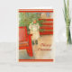 Carl Larsson, artista fino del siglo XIX de Suecia, pintó a un pequeño niño sueco nombrado Greta, delante de un árbol de navidad y de llevar un manguito del abrigo de invierno y de la piel. En el fondo es un banco rojo y en el primero plano está la mecedora del rojo del vintage. La tarjeta de Navidad escandinava adorable se puede personalizar con su propio mensaje de encargo dentro, o usted puede dejar el texto proporcionado. Dios julio.