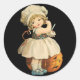 La vintage postal de Ellen Clapsaddle Halloween muestra a una adorable niña tallando una manzana y tirando los hombros con calabaza detrás de ella. Reimpreso en estos pegatinas de Halloween.