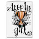 Ideas de regalo de carreras para chicas. Un trofeo con banderas a cuadros y un diseño de corazón y flores y los Chicas del Trofeo están disponibles en camisetas, sudaderas, tazas, botones, pegatinas, gorras, delantales, cadenas de llaves, tarjetas y más para mujeres y chicas. Grandes regalos para los aficionados a la carrera.