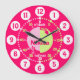 Coloridos chicas de color de la pared gráfica codificado para ayudar a su hijo a leer un reloj. Esta colorida ayuda didáctica incluye minutos y horas y pasadas y hacer el juego infantil de contar la hora. El color del reloj codificado en rojo, rosa, verde amarillo y blanco, se puede personalizar con el nombre corto de su elección. Actualmente se lee Nikita. Diseñado exclusivamente por Sarah Trett. Una gran adición al dormitorio de una niña que está aprendiendo a leer la cara de un reloj.