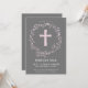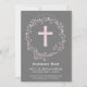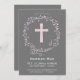 La elegante y moderna invitación al bautismo o al bautizo incluye una cruz rosa y una corona floral. Tiene un diseño femenino y femenino y puede ser personalizado para la ocasión religiosa especial de su bebé.