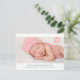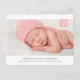 ¡Esta postal moderna y tradicional del anuncio de la natalidad facilita compartir con sus seres queridos tus emocionantes noticias de recién nacido! Personalice la tarjeta postal añadiendo su foto favorita al frente, personalizar el monograma rosa y blanco, y agregue el nombre del recién nacido y los detalles de su nacimiento. En la parte posterior, puede escribir un mensaje personal a los destinatarios.