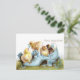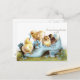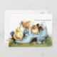 Cinco chicas en un zapato de satén azul de alto talón con un arco y olvídeme-nots azules en una vintage postal de Pascua de 1908.