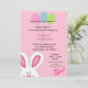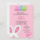 Invitaciones de cumpleaños de Conejo Conejo Conejo Conejo Conejo Conejo Cuto para Chicas. El diseño tiene un conejito adorable y globos coloridos. También se puede decir para una caza de huevos durante Pascua. Personalizar con los datos de su fiesta.