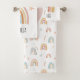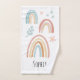 Este bonito y caprichoso juego de toallas para niños incluye diseños de arcoíris acuarelas con flores y botánicos rosas y azules. Este bonito conjunto puede ser personalizado con el nombre y el monograma de su chica. ¡El regalo perfecto del arco iris boho para el cumpleaños de un niño!