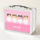¡Una bailarina necesita comer bien para entrenar al ballet y la danza! ¡Esta lonchera es perfecta para los bailarines! Inspirándose en el clásico ballet del lago Swan, esta lona de almuerzo consta de cuatro chicas vestidos con bonitos trajes de ballet de tutus blancos con gorras cisne. Personaliza fácilmente con el nombre del niño.