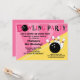 La invitación a una fiesta de bolos super lindo incluye texto de personalizable y un esquema de color rosa y amarillo. ¡Perfecto para cualquier fiesta de cumpleaños de bolos!
