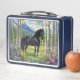 El Black Horse Chicas Flowers Meadow Pink Blue Fun Metalizado Lunch Box se adapta al vibrante y activo estilo de vida de los amantes de los caballos adolescentes y preadolescentes. Con su encantador diseño de un caballo negro de pie en medio de un campo de flores silvestres rosas, azules y violetas, aporta un toque de magia equina a cada hora del almuerzo. Los alegres colores florales agregan un sentido de alegría, creando una imagen edificante que a los chicas les encantará llevar a la escuela, los establos o cualquier aventura al aire libre. Diseñado pensando en la personalización, esta lonchera ofrece la oportunidad de añadir un nombre, haciéndolo realmente único. Perfectamente grande y bellamente diseñado, complementa el amor por los caballos y el exterior, convirtiéndose sin esfuerzo en un accesorio divertido y funcional para cualquier rutina diaria de chica ecuestre.