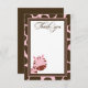 Esta elegante tarjeta de agradecimiento de 3.5x5 chica tiene un suave fondo de girafa marrón chocolate rosa y oscuro con un marco marrón, rosa y blanco en el medio. En la parte inferior, hay una bonita cabeza de cebra mirando a la vuelta de la esquina. En la parte superior, Gracias está escrito en una fuente marrón de moda cursiva. Algunos elementos de diseño son de STOCKBERRY STUDIO.