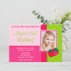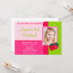 Esta encantadora invitación personalizada de fresa rosa y verde es una forma divertida y agradable de invitar a sus invitados a su fiesta de cumpleaños de niñas.