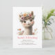 Invitación lindo bebé alpaca para la fiesta de cumpleaños de tu niñita. La Alpaca lleva una corona de margaritas y está lista para celebrar. © Mini Impresiones Moi
