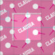 Bolas de golf en los lazos deportivos repiten un patrón rosado personalizado tejido de diseño deportivo. Bolas de golf blancas en un tee de golf rosa caliente con un color de fondo rosa claro que se puede cambiar si es necesario. Ideal para los golfistas y los aficionados al golf. Personalizar con su propia elección de nombre, actualmente lee Claudia. Arte y diseñado por Sarah Trett.