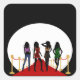 Chicas de moda © Sunny Mars Designs. Guay, pegatinas cuadradas lindas, modernas, de moda y muchacha personalizado con la silueta de cuatro magníficas divas de moda femenina glamorosa o modelos de maquetas que posan en sus elegantes trajes.