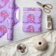 Divertido escudo de caballero princesa púrpura y rosa con una cabeza de unicornio, corona de la princesa real, una estrella y tu edad de cumpleaños. Personalizar con el nombre y edad de sus hijos, actualmente dice, Feliz 6 cumpleaños Paige. Arte gráfico único y diseño de Sarah Trett para www.mylittleeden.com en zazzle.