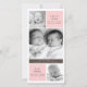 Presenta tus nuevos pequeños al mundo con este hermoso anuncio de nacimiento moderno para mellizos de katkadoodle.com. Suave fondo rosa pastel, tipografía contemporánea en marrón mocha con un estilo simple que incluye tres fotos retratos de tus niñas dulces. También disponible para los gemelos.