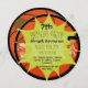 Una encantadora y colorida invitación de cumpleaños en forma de ronda para los chicas que aman el baloncesto, cuenta con un baloncesto naranja en la parte delantera y trasera con varias jugadoras de baloncesto y zonas donde se puede personalizar fácilmente con los detalles de la fiesta de cumpleaños.