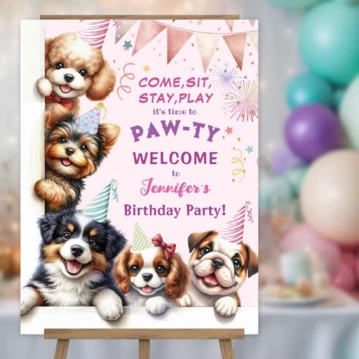 Chicas Puppy Pawty 4ª Invitación de fiesta de cump