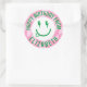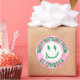¡Este Chica retro feliz cara cumpleaños Pegatinas de regalo hace que envolver regalos sea una brisa! El diseño presenta una textura de color arcoiris perfecta para dar regalos.