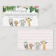 Foliage Floral Safari Baby Shower Solicitud de libro Insertar animales de safari audaces y dulces chicas bebé insertar el prospecto de la solicitud de un libro de ducha con cuatro animales de la selva, algunos arreglos florales rosados, rojos y amarillos y algo de follaje.