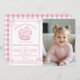 ¡Haz especial el cumpleaños de tu niñita con nuestra invitación a la foto del cumpleaños de la pastelera rosada! Con una suave paleta de color rosa, elegantes detalles del arco y un encantador diseño de tartas en forma de corazón, esta invitación enmarca la foto de su hijo con gusto para darle un toque personalizado. Perfecto para una celebración de cumpleaños de temática princesa, o rosa, marca el tono para un fiesta dulce y elegante. ¡Inviten a la familia y amigos a celebrar con este adorable diseño digno de conservarse!