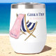 El vaso de vino de la silla de playa a rayas de la marina es perfecto para su próximo viaje de chicas. Con un bonito diseño de una silla de playa cubierta con una toalla rosa que se puede personalizar con un nombre. Ideal para disfrutar de tus bebidas favoritas mientras descansas al sol y para crear recuerdos inolvidables juntos, este tumbler te recordará toda la diversión que has tenido mucho después de terminar el viaje.