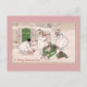 Una Feliz Navidad para ustedes Tres chicas con abrigos blancos, gorras y botas, han arrastrado sus trenzas verdes cargadas de regalos, una botella y un mistletoe, a través de la nieve y hasta una puerta en una pared de ladrillo. Un chica está acurrucando a un pequeño cerdo en esta vintage postal navideña de 1913.