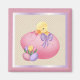 Una linda chica de Pascua recién salta de su huevo rosa de Pascua.