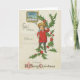 Esta vintage tarjeta de bienvenida de la época victoriana tiene un diseño muy sencillo. Muestra a un chico hablando por un teléfono antiguo de la época original de la tarjeta. Incluye un relleno del saludo en blanco que imita una llamada telefónica. La carta también está cubierta con un montón de holly.