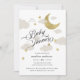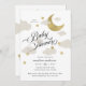 Esta linda invitación para baby shower es dulce y elegante y perfecta para un tema de luna y estrellas. Cuenta con mi ilustración dibujada a mano de nubes, estrellas y luna con hoja de oro falso y acentuada por caligrafía elegante. El reverso cuenta con una ilustración coincidente de nubes y estrellas con espacio para que escribas información adicional. Asegúrate de ver el resto de esta colección exclusiva para ver más artículos para tu día especial.