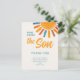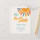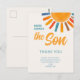 Agradece a familiares y amigos por sus regalos en tu baby shower con temática solar con esta tarjeta postal de agradecimiento. Cuenta con el texto "Aquí viene el hijo" en tipografía elegante con un sol de acuarela de colores brillantes sobre un suave fondo crema. Fácilmente personalizable. Acuarela original © Michele Davies.