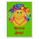 ¡Bebé! Un gato amarillo y naranja a rayas con bigotes giratorios y un fondo sicodélico con motivos de arco iris. Tarjeta de felicitación con un diseño de personalizable amarillo, naranja, rojo, azul, verde, rosa, púrpura y blanco para que pueda personalizar con su propio texto, imágenes e ideas.Un dibujo original de lápiz de colores realzados digitalmente por Jess Perry.