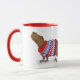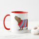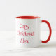 Deséenle a alguien un 'Navidad capy' con esta linda taza que representa a Chrissie el capibara en su saltador festivo. El mensaje puede ser personalizado para ese toque especial,