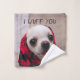 Chihuahua lindo con el texto te quiero - idea de regalo de los amantes de los perros de San Valentín. El adorable y adorable perro blanco con grandes ojos redondos, nariz negra, lengua que sobresale y bandana roja en la cabeza.