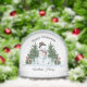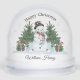 This personalised snow globe is a suitable keepsake for a young grandson or son. The design on the front and back includes a watercolour festive scene of snow, Christmas trees, candy canes, blue Christmas gifts, and a snowman with hat, scarf and ornaments.