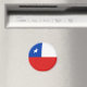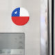La bandera de Chile ha sido cuidadosamente ajustada a la forma circular de este imán. Una manera decorativa de promover la cultura chilena.