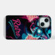 Añade un toque de frescura retro a tu iPhone 15 con este diseño gráfico que incluye un gato elegante con gafas de sol y un gorra. La iluminación de neón crea un aspecto vibrante, perfecto para mostrar tu lado divertido.