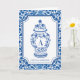 Este único diseño de tarjeta monogramada de jengibre original presenta un fondo con estampado floral de estilo chinoiserie muy moda, con un jarrón de jengibre de color azul y blanco. Puedes personalizar el jarrón de jengibre con tu inicial y con tu nombre debajo del jengibre. El interior se deja en blanco para que escribas tu mensaje personal, o compra entre 8 y 10 tarjetas y las empaquetas con un hermoso arco para un regalo de una anfitriona amable.