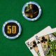 El jefe muestra a un jefe de policía en un escritorio en una habitación oscura con guardaespaldas detrás de él. Los chips de póquer jefe son para jugadores, jugadores, jefes, aspirantes a jefes, aficionados a la ley y el crimen, y tal vez hasta miembros sindicados (bromeando — tal vez). "Boss" es el arte original de la sintografía de Steamy Raimon.