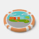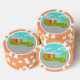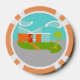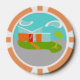Estos modernos Chips de póquer de Mid Century Personalizado House harán que usted quiera sacar la alfombra de BIENVENIDA y se haga en casa! El diseño artístico minimalista de los años 60 se compone de una elegante casa de piedra naranja y de cristal acuático sobre un frondoso césped verde en forma de boomerang. El césped forma un oasis en medio de su entorno gris y de hormigón. Una palmera verde se balancea en la brisa. Cuatro escalones de piedras naranjas conducen a la puerta trasera, roja y retro, con tres cristaleras rectangulares. A la izquierda de la puerta, una maceta de flores turquesa acoge una planta tropical verde. La casa tiene un techo blanco inclinado en forma de V que apunta hacia dos nubes blancas con forma de riñón. El cielo es una sombra positiva de agua. ¡Nadie querrá tirar piedras de esta moderna casa de cristal! ¡Compra este producto kitschy de la edad espacial y sé el gato más genial de tu bloque!