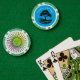 Crea tus propias fichas de póquer personalizadas para celebrar el espíritu de tu club de golf! Estos chips de personalizado incluyen el logo del club en el centro, flanqueado por el nombre del club a lo largo del borde superior en negrita y texto fácil de leer. También puede agregar texto o números para denominaciones, o incluso el año de la liga para conmemorar una temporada especial. Fabricadas con materiales compuestos de arcilla, estos chips son ideales para noches de póquer, eventos de club o como un keepsake único para miembros e invitados. Perfecto tanto para la función como para el estilo, estos chips de póquer del club de golf aportan un toque de campo a su juego.