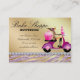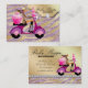 La tarjeta de visita de la magdalena de la panadería con la mujer de la vespa de la diversión y el purpurina de la cebra imprimen.