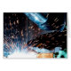 Esto es una fotografía de un soldador rodeado por las chispas.