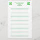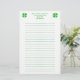 Pintura de un shamrock verde, trébol de cuatro hojas, recortado en puntos dorados, con un marcador de dirección, impreso en papel forrado. Personalizar fácilmente la dirección del formulario de plantilla.