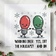 Luces divertidas de Navidad apagadas y encendidas Sí, trabajando durante las vacaciones, características divertidas de bombilla con dos adorables luces de Navidad rojas y verdes con caras sonrientes, acentos nevados y un chiste estacional divertido. El diseño mezcla el humor navideño con un juego de palabras inteligente relacionado con el trabajo para una apariencia festiva divertida y ligera. Es ideal para el humor de oficina, compañeros de trabajo y cualquiera que disfrute de frases divertidas de Navidad con arte alegre de dibujos animados navideños.