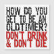 ¿Cómo llegas a ser un viejo cronómetro? ¡No bebas y no mueras! Un viejo chiste o lema de recuperación de 12 pasos. Doce pasos Oldtimers y mi patrocinador dicen esto todo el tiempo. Diseñado por Henry Nelson de Wichita Kansas