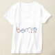 Hecho para los partidarios del funcionamiento presidencial de las chorreadoras 2016 de Bernie, esta camiseta blanca V-necked linda utiliza una fuente en colores de alternancia de rojo y un azul anchos, deformados para anunciar a "Bernie 2016."